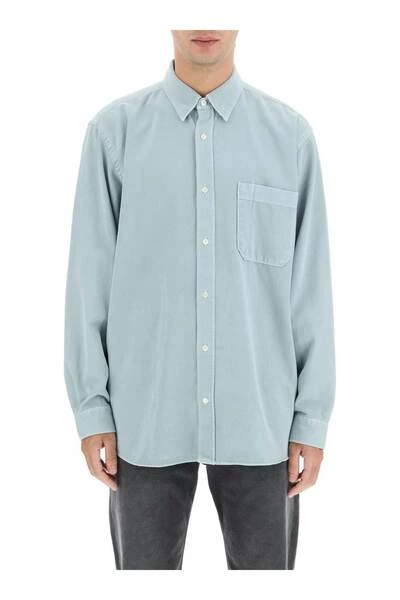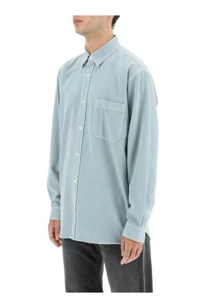 Casual shirt door gesloten in kleding geverfde katoenen twill met een ontspannen pasvorm. Knoopplacket, schuine manchetten met één knop, één borstzak, gebogen zoom. Het model is 187 cm lang en draagt een maat L.