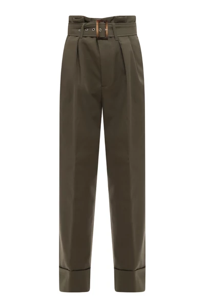 Hoge taille met riem en gesp, afsluiting met zip en haken, pinces details, laszakken en dubbele pocket op de achterkant