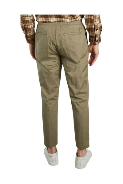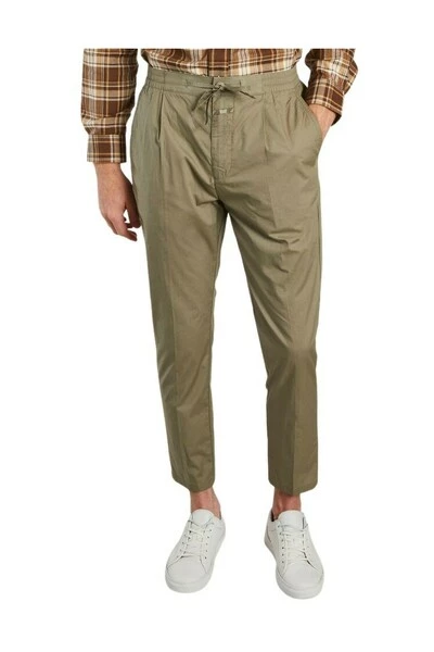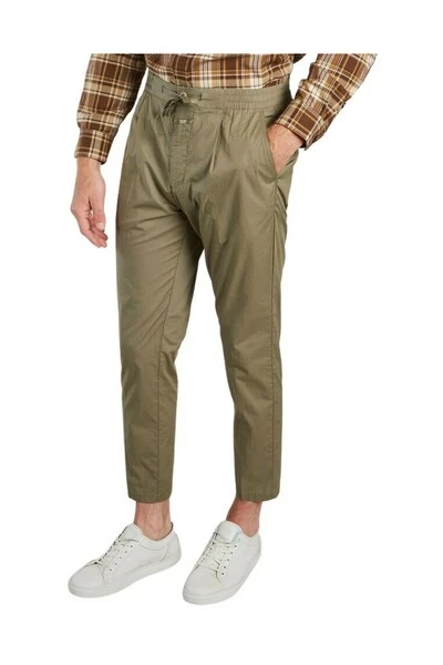 Katoenen broek: – Elastische taille – Zijzakken – Knop en Zip – Drawstring – Achterzakken