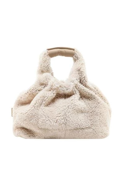 % Sluiting met lederen veters, % handvat met lederen detail, % interne zak, % lederen interieur, % shearling