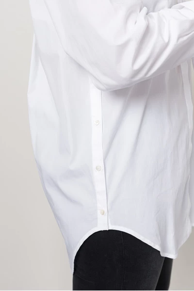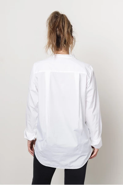 Blouse van Closed. Deze blouse heeft een hoog gesloten, ronde halslijn, lange mouwen met manchetten en geplooide details aan de achterzijde. De blouse is bewerkt met een knoopsluiting aan beide zijnaden om splitten te creëeren en heeft een lang model. Uniek Mode maakt gebruik van Nederlandse maatvoering. De maten van Scandinavische en Duitse merken zijn gelijk aan de Nederlandse maatvoering.Maatvoering: XS (34), S (36), M (38), L (40), 42 (XL)Materiaal: 100% baumwollePasvorm: Dit item heeft een los vallende pasvorm.