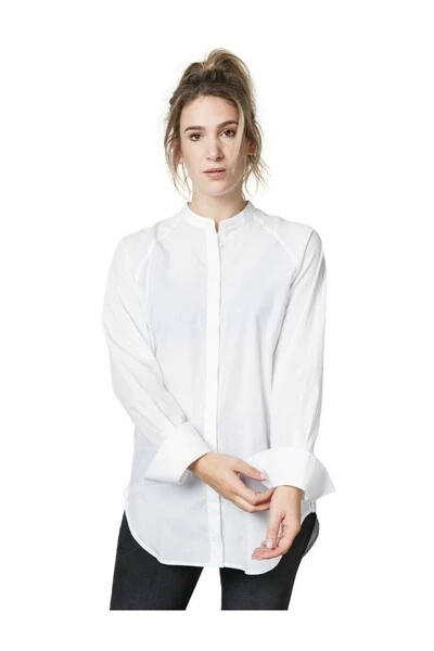 Blouse van Closed. Deze blouse heeft een hoog gesloten, ronde halslijn, lange mouwen met manchetten en geplooide details aan de achterzijde. De blouse is bewerkt met een knoopsluiting aan beide zijnaden om splitten te creëeren en heeft een lang model. Uniek Mode maakt gebruik van Nederlandse maatvoering. De maten van Scandinavische en Duitse merken zijn gelijk aan de Nederlandse maatvoering. Maatvoering: XS (34), S (36), M (38), L (40), 42 (XL) Materiaal: 100% baumwolle Pasvorm: Dit item heeft een los vallende pasvorm.