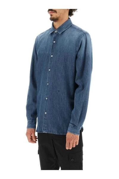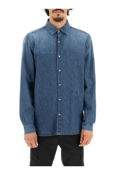 Gesloten shirt gemaakt van zachte, lichtgewicht organische en gerecyclede katoenen denim, met klassieke kraag, Franse placket, afgeronde manchetten met één knoppen en gebogen zoom. Monogramdetail geborduurd aan de voorkant. Het model is 187 cm lang en draagt een maat L.