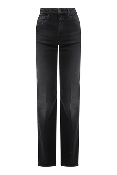 Sluiting met knop en zip, vijf zakken, wijd uitlopende onderpoot en hoge taille, gemaakt in Italië, 92% biologisch katoen 6% elastomultiester 2% elastaan