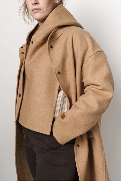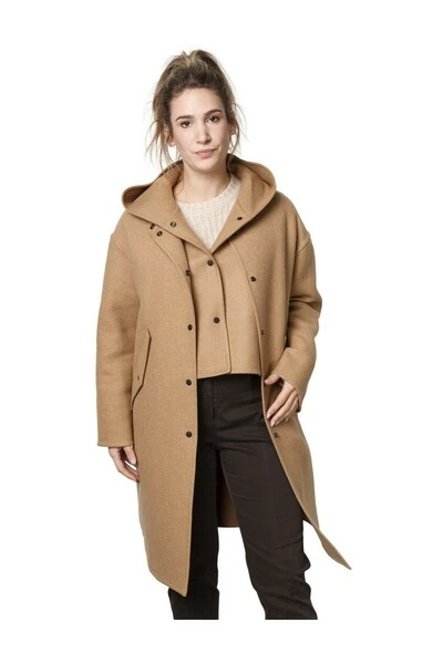 Deze knielange, ongevoerde mantel van Closed is uiterst vernieuwend. De rechte, ruimvallende jas komt met een afneembaar accessoire in de vorm van een schouderstuk met capuchon. Maar liefst 85% van de gebruikte wol is gerecycled! Materiaal: 100% wol Pasvorm: heeft een oversized pasvorm