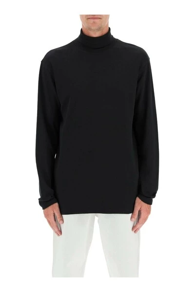 T-shirt met lange mouwen en hoge nek van Closed in Jersey-vergrendeling van puur katoen, met monogramdetail geborduurd aan de beurt van de kraag. Laterale spleten aan de onderkant, zachte pasvorm. Het model is 185 cm hoog en draagt de L. -maat