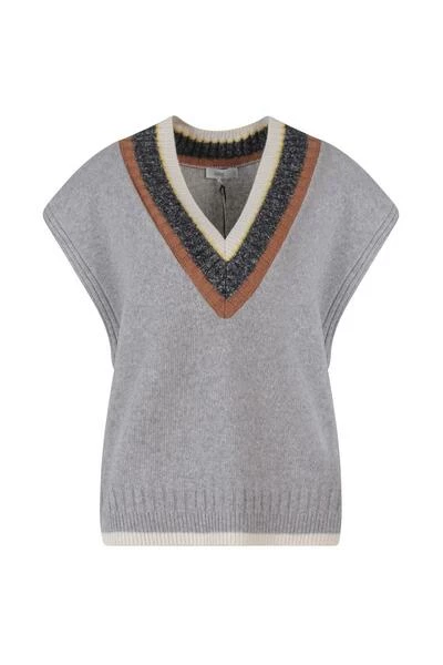 % V-neckline, % mouwloos, % tricolor detail, % geribbelde profielen, % 97 % wol 1 % biologisch katoen 1 % biologische nylon 1 % nylon