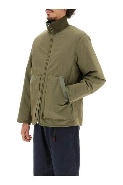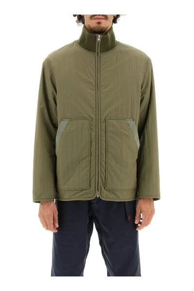 Gesloten jas in technisch katoen met enigszins contrasterend teddy interieur, gekenmerkt door hoge nek in geribbelde Strack -trui, tweewegende ritssluiting, grote pocketvakken afgewerkt in grosgrain met interne automatische, verstelbare manchetten met drukknop en een zak met een zak. Normale pasvorm. Het model is 187 cm hoog en draagt de L. -maat